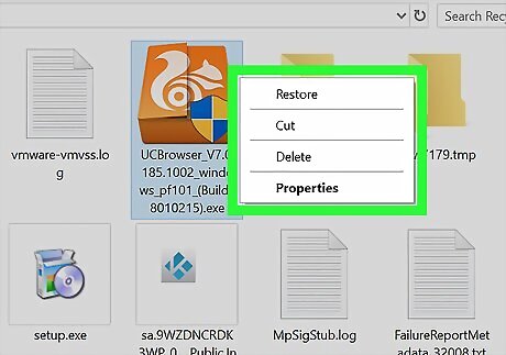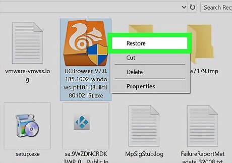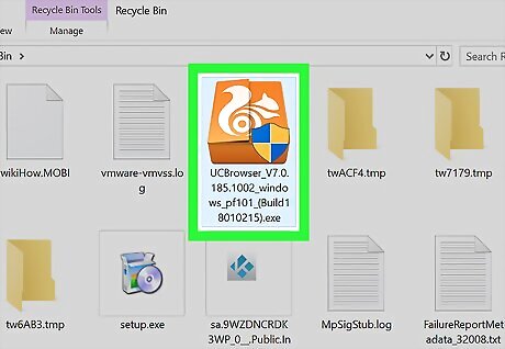 Open the Recycle Bin. It’s a recycling basket icon typically found on the desktop. If it’s not on the desktop, click the magnifying glass or circle icon next to the Start menu, type recycle into to the search bar, then click Recycle Bin.