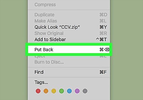 Click Put Back. It’s near the bottom of the menu. This restores the selected file(s) to the original location.