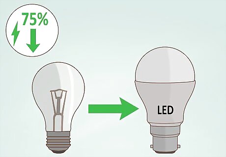 Switch your incandescent lightbulbs to LED bulbs. LED lightbulbs are affordable and easy to find at your local hardware store. These lightbulbs use up to 75% less energy than incandescent lightbulbs and come in a variety of shapes and light levels. You can find these in just about any store that sells lightbulbs and lamps, including home improvement stores.