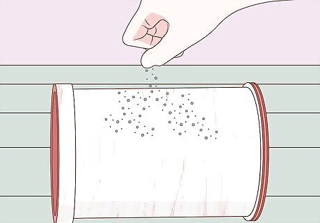 Wash the canister with warm water and soap. Place the canister in your sink and rinse it with slightly warm water and a mild dish soap. Rotate the canister several times so you clean the whole thing. If it will help, use a sprayer hose to dislodge dirt and grime. Be careful of sharp edges or too much rust while cleaning. If washing the canister doesn't work, consider getting rid of it