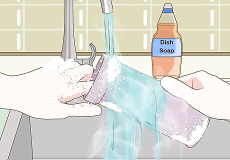 Soak the canister in warm water and soap for 30 minutes if needed. Fill your sink with warm water and add some light dish detergent. Then, submerge the canister in your sink. Remove it after 30 minutes. Soaking your canister will help remove any stains or grime. If you don't remove the canister after half an hour, you could worsen rust stains.