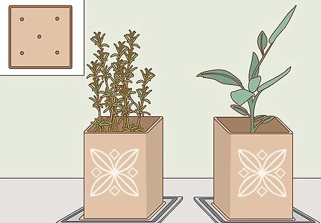Create pots for herbs. Drill three to five small drainage holes in the bottom of the canister. Then, place a small plastic drain dish (purchased from a home improvement store) underneath it. Fill the canister with dirt and then plant the herbs of your choice. Depending on the size of the canisters, you may be able to create a small herb garden in your kitchen. Consider herbs like oregano, basil, and rosemary. Use chalkboard paint on the outside of the canister so you can easily label your herbs