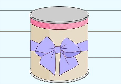 Place labels on the canister. In addition to decorating your canister, you can put labels on them. Do this by either stenciling words onto the canisters or by attaching fabric or paper tags. Your labels can be purely decorative or they can reflect the new lives your refurbished canisters will have. For example, you can label the cans “sugar,” “oatmeal” or whatever you'll store in them.
