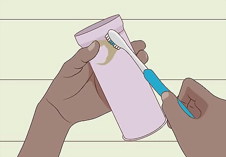 Scrub extra dirty areas with a toothbrush. If your canister still has some areas that look dirty or grimy, use a toothbrush to scrub them. Toothbrushes are especially good at cleaning corners, edges, and other hard-to-reach areas. Avoid scrubbing logos or pictures on the outside of the canister.
