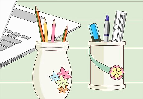 Use your refurbished canisters to store craft supplies. Depending on the size of your old canisters, they may be perfect to store craft supplies like paint brushes, markers, and more. To do this, paint and personalize the canister any way you want. Then, stencil a label on the canister. For instance, stencil "paint brushes" or "colored pencils."