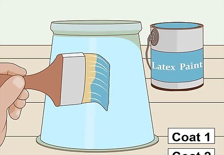 Paint your canisters with latex paint. Pick and purchase a paint color of your choice. You may want to pick a color that matches your kitchen or whatever room you're going to use the canister in. Then, use a regular paint brush and apply a coat to the canister. Afterward, add another coat of paint. By adding another coat of paint, you'll better seal the canister and make the paint job look seamless. If you want to save yourself some time, consider spray painting your canisters for more of an industrial look. Consider metallic or even chalk paint. Consider picking a color that matches or blends with the color theme of whatever room you'll put the canister. Paint the inside and bottom of the canister if they are visible.