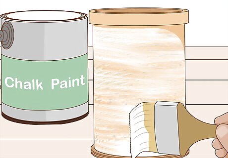 Use chalk paint to add a distressed look. A distressed look will complement a shabby chic look you might be trying to create in a given room. To do this, use a regular paint brush to add a light coat of chalk paint. Then, take a damp paper towel and wipe the canister down. When doing this, some of the chalk will come off, allowing the bottom color to bleed through. Some colors that are popular include white, light green, or pastel colors. Feel free to experiment with different chalk paints. There's no reason why this shouldn't be fun!