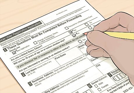 Fill out the voter registration form. The form will ask you if you are a US citizen and at least 18 years old on Election Day. Then, it will ask for some basic information like your name, date of birth, and address. You will also need to provide your ID or social security number. If this is your first time registering to vote in Texas, select "New" under application type. If you are already registered in Texas and are changing your address, select "Change" under application type. If you are filling out the form for a replacement voter ID card, choose "Replacement" under application type.