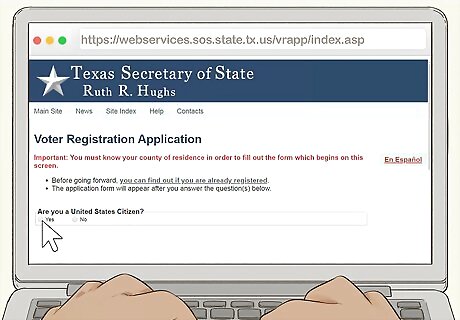 Fill out a registration form online to register from home. If you can't find a voter registration form, or if you want to register to vote quickly and easily from home, fill out the form here: https://webservices.sos.state.tx.us/vrapp/index.asp . You will still need to print and mail the form into the Voter Registrar office. You will not be officially registered to vote until you have mailed the completed form to your county's Voter Registrar.