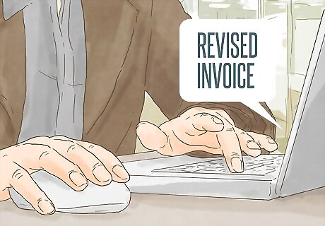 Correct the invoice. Go into your invoicing software and update whatever information needs to be changed. You should change the invoice number so that it reflects that it has been revised. For example, invoice number 12567 would be 12567-R. Put the words “Revised Invoice” at the top of the document. You should also change the date of the invoice. If your client simply lost the invoice, you don't need to update the information or include the words “Revised Invoice” at the top. Instead, you are simply providing a new copy of an invoice that hasn't changed.