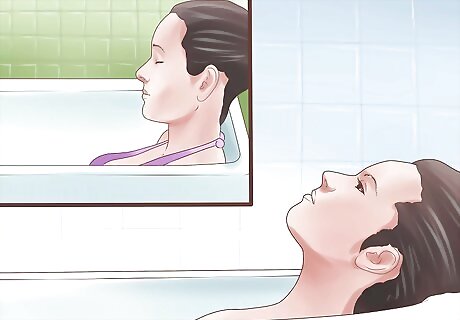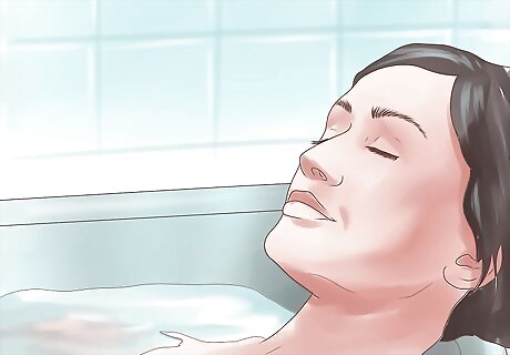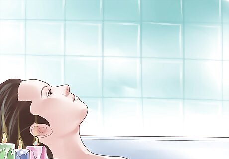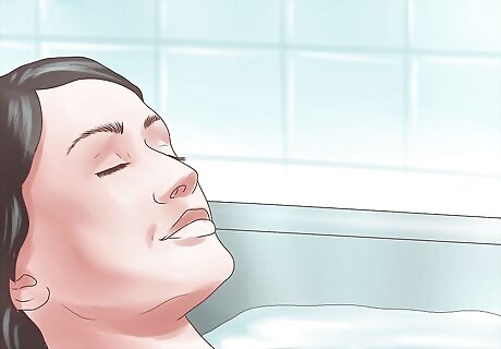 Run the hot bath. Add oil, bubbles or a bath bomb according to your preference. Avoid making your bath too hot, because it may dry your skin or cause stress to your cardiovascular system.
