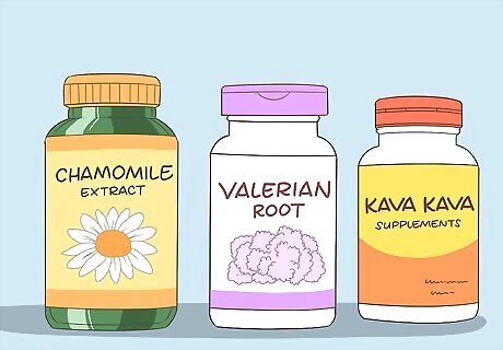 Try a natural anti-anxiety medicine. Many people have found relief by using herbs and other natural substances that have been shown to reduce anxiety over time. Talk to your doctor before taking any supplements, especially if you have allergies. Go to your local health food store and try out the following natural medicines: Chamomile flower. This powerful flower has a calming effect. Buy a box of chamomile tea or take chamomile extract or supplements. Chamomile tea may cause allergic reactions in people who are allergic to ragweed or Valerian. Valerian root. This root is popular in Europe as an anti-anxiety treatment. This herb may cause allergic reactions in some people. Kava kava. This Polynesian plant has a sedative effect, which is said to help treat anxiety.