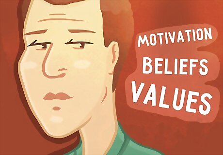 Identify your beliefs and values. Your beliefs and values give your life meaning, direction, and purpose. Consider ways that you can accomplish or live your life to honor these values. If you’re unsure what you believe, question yourself. The answers may reveal what is important to you. For example, you might ask: What motivates me in life? Is it family, friends, success, or creativity? What is important to me? What do I need in life to be happy? When am I at my happiest? What am I thankful for in my life? Of these things, what is the most valuable to me? What is my calling in life? How can I include that in my daily work? What makes me feel satisfied and fulfilled? What makes me feel proud? How would I rank my values from most to least important?