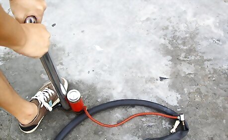 Partially inflate the new inner tube just enough that the tube forms a circular shape. This makes it easier to fit the tube into the tire.