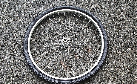 Remove the tire from the rim once the wheel is detached from the bike using a tire lever. This is done by pushing the narrow end of the tire lever between the tire and the rim, and then using the lever to lift the edge of the tire over the rim. Caution: Be sure to remove the dust cover from the valve stem, and use extra care when removing the valve stem from the rim.
