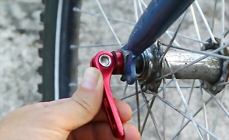 Detach the wheel with the blown inner tube using a wrench or your wheel’s quick release lever. This is done easiest with the bike resting upside down, balanced on the seat and the handlebars.
