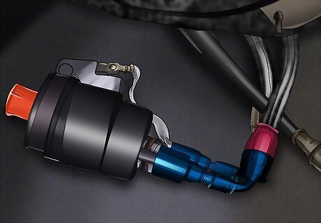 Place the new fuel filter in the bracket and connect both ends of the filter to the rubber fuel-line hoses.