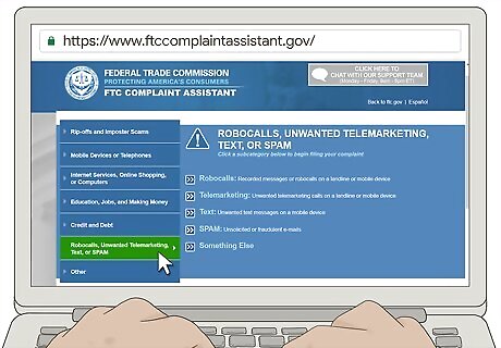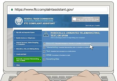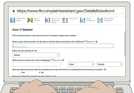 Visit the FTC Complaint Assistant website. To file a complaint with the FTC online, go to https://www.ftccomplaintassistant.gov/. Gather any information you have about the telemarketer who called you, including the phone number and the date and time of the call. The FTC takes complaints on a variety of different categories. For telemarketer calls, choose the category listed as "Robocalls, Unwanted Telemarketing, Text, or SPAM."
