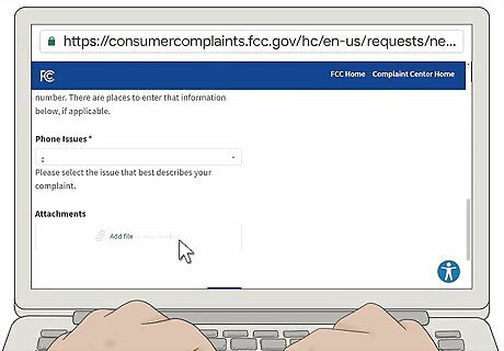 Fill out the online form to file your complaint. Go to https://consumercomplaints.fcc.gov/hc/en-us/requests/new?ticket_form_id=39744 to start the online complaint form. To report a telemarketer, select "unwanted calls" from the "Phone Issue" drop-down menu, then select "all other unwanted calls" as the sub-issue. Put your information in the relevant blanks on the form. Note that you must provide information for any question that has a red asterisk by it. You won't be able to submit your complaint unless these areas are filled out.Tip: The FCC does not accept anonymous complaints. You must include your full name and contact information or you will not be able to submit your complaint.