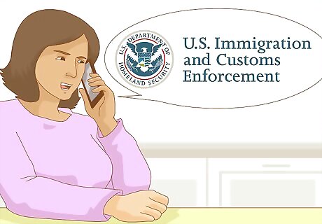 Call ICE. From the U.S. and Canada, you can report an expired visa to ICE at 1-866-347-2423. If you are outside the U.S. or Canada, then you can call 802-872-6199. You should also decide whether you want to report anonymously. If you do, then ICE can’t contact you to get follow-up information. You only need to report a violation once. Accordingly, if you report by telephone, then you don’t need to report online.