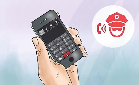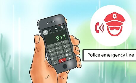 Call the police emergency line. You should only call 9-1-1 if the hunter is currently trespassing on your land and is posing a danger to you, your family, or your property. For example, if the hunter is pointing his or her firearm toward your home or toward your livestock (if you live on a farm), you may want to call 9-1-1. When you call 9-1-1, calmly explain what is happening and ask that a law enforcement member be dispatched to the area immediately. When law enforcement arrives, let them handle the trespasser and do not engage until asked to do so.