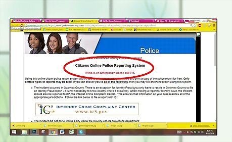 File an online report. If you do not want to call the non-emergency line, you can usually file a non-emergency report online with your local law enforcement agency. Usually, these reports can only be filed in certain instances and for certain crimes. Be sure you check with your local law enforcement agency to ensure this is a valid option for you. For example, in Gwinnett County, Georgia, you can submit an online complaint if the trespassing took place in that county, there are no known suspects, and there is no physical evidence. If you meet these requirements, you can click on the report button that corresponds to criminal trespass. You will then be asked to supply as much information as possible then submit the report.