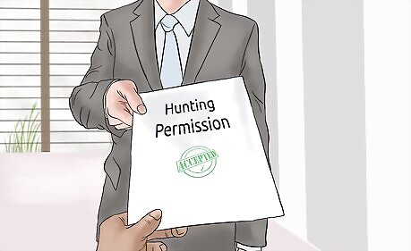 Require permission in advance of a hunt. If you are going to allow hunting on your land, consider posting signs around your property that ask hunters to contact you before entering your land. By doing this, you can control how many hunters are on your property at any one time and you can make sure everyone on your land is in a safe environment. For example, if you know there are hunters on your property on a specific day, you can stay off the property and keep others away. This will ensure nobody is hurt by rogue gunfire or other accidents. Some states have forms that hunters can fill out and bring to you. These forms are a great way to keep track of hunting activities on your property. When a hunter uses one of these forms, they will fill it out and bring it to you prior to hunting on your land. The form will include where your property is located, when the hunter can hunt, and any restrictions you place on their activities. You should keep a copy for yourself and the hunter is required by law to carry it with them whenever they are on your land.