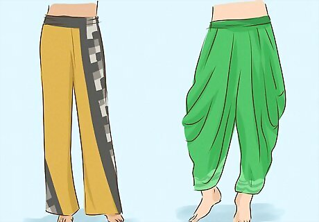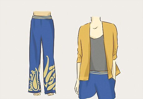 Turn your old saree into a pair of comfortable palazzo or dhoti pants. Palazzo pants are loose and wide-legged, making them great options for warmer climates. Dhoti pants are also loose and breathable, but they taper at the ankle while sitting wide through the thigh. Use your old saree material to make one or two pairs of pants to enjoy wearing around the house or out while you run errands. Along the same line, you could also turn your saree into a pair of really cute shorts.