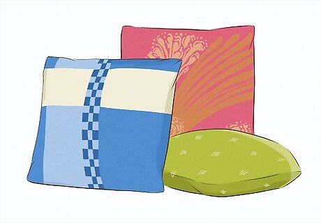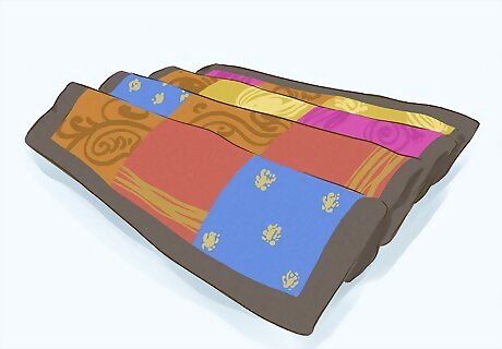 Sew covers for your pillows and cushions to spruce up your room. Measure, cut, and sew your saree material into slipcovers for the pillows in your living room, bedroom, and elsewhere. Mix and match colors and patterns if you have more than one saree to use, or consider creating a set of pillows to give away to someone as a gift. If you don't have a sewing machine, you could do this task by hand. It may take a while, but it basically just requires straight stitches to secure to fabric over the pillow.