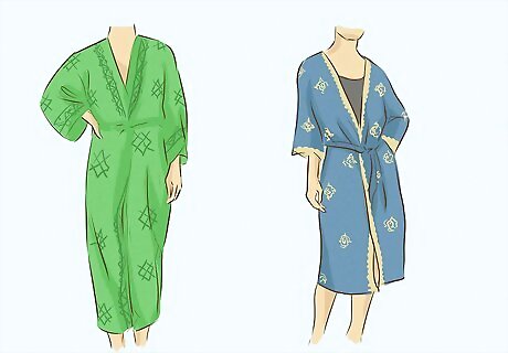 Fashion a kimono out of an old saree for a comfortable, flowing piece. Kimonos are light and breathable, and they're often made of beautifully patterned fabric, making your old saree a great resource. Make it as long as you want, and leave the sleeves long and wide to keep with the kimono fashion. Wear them overtop of swimsuits or as a robe, or pair them with a nicer outfit for an evening out.Did You Know? Traditionally, the kimono was secured around the waist with a belt. Modern fashion changed the style so you can wear it open and flowing.