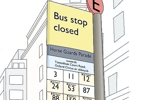 Watch out for closed stops on your way to and from your destination. Every now and then, you’ll come across a bus stop that’s been shut down due to road maintenance or public events like parades and big sporting events. When this happens, officials will place a bright yellow cover over the stop’s display board. Fortunately, there are stops every few blocks within the city limits, so you should never have too much trouble finding an alternative route. If your stop is closed and you’re not sure where to go next, ask your driver for more information. If worst comes to worst, you can always use your contactless payment method of choice to take the Tube, a tram, or a taxi to your destination or the next open stop.