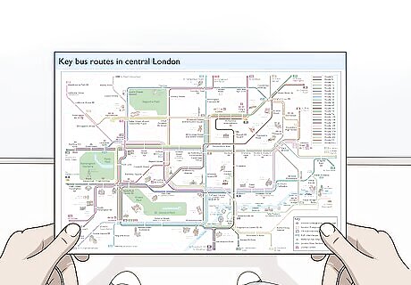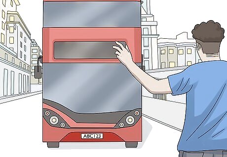 Head to the nearest bus stop. London is a fast-moving, densely-populated metropolis, which means you'll find a bus stop every couple of blocks within the city limits. When you arrive at the bus stop, check the overhead display board to see when the next bus is due in and where it’s going. London bus stops are recognizable by their signature red-trimmed covered shelters, some of which are equipped with interactive digital route maps that update in real time. Be sure to memorize the number of your bus so you can be looking for it when it shows up.