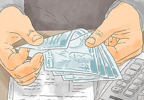 Open a slush fund account. When your income is widely variable, you may benefit from a third savings account that allows you to skim off the excess when you have a high-income month so you can get through particularly lean months. For example, if you normally make around $3,000 a month, but one month you make $5,000, you could take the extra $2,000 and move it to a savings account where it will earn at least a little interest. Taking it out of your checking account helps you control your expenses and keeps you from splurging on unnecessary luxuries. That way, you'll have that money if you had an extraordinarily lean month, such as if you only made $500 one month. You may want to simply add this money to your emergency fund, or you may want to create a separate account that you can dip into so you don't risk disturbing your emergency money.