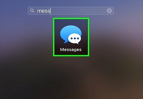 Open the Messages app on your Mac. This app icon looks like two speech bubbles, one blue and one white with blue ellipses inside, that you'll find in the Applications folder of your Finder or in your Dock. If your messages appear here, you can skip the rest of this method. If you don't see your messages, continue following the steps.