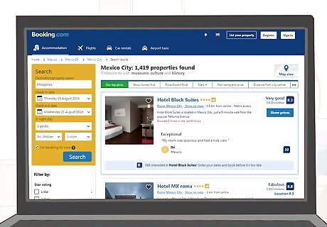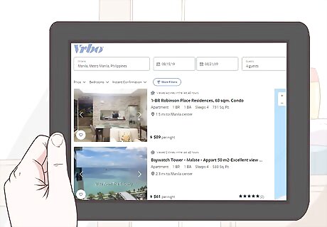 Check online rental sites for vacation rental properties in your budget. Look on sites like Airbnb, Vrbo, and HomeAway to find accommodations in a range of prices. These sites will often give you more for your money than a standard hotel. Remember to factor in things like the distance of the vacation property from the wedding venue and anywhere else you plan on going. You will have to spend more on transportation if you choose a property a ways away from where you will be going.
