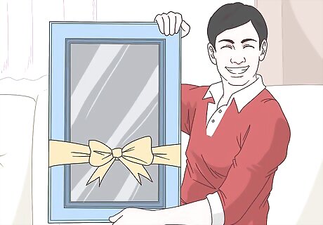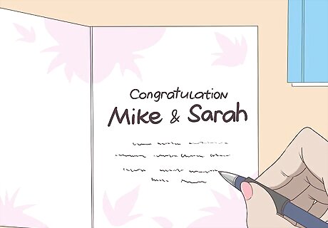 Give a personalized gift from the heart if you can't afford a big gift. Gift giving isn't about the money you spend. Give something handmade, personal, local, or unique to give a truly memorable gift that won't kill your wallet. For example, you could go to an antique store to find a one-of-a-kind household item, or buy art from a local artist. Another idea is to give the couple something like a homemade picture frame that they can put a wedding photo in.