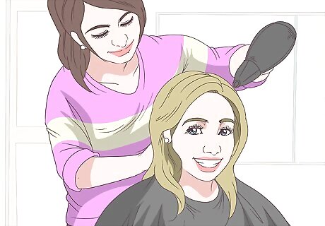 Have a friend do your makeup and hair if you need it done. Don't pay a professional to do your hair or makeup if you absolutely need to get them done. Have a friend do it for you instead whenever possible. You can always return the favor later on, or offer to take your friend out for happy hour to say thank you.