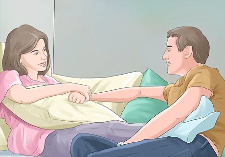 Offer to hold her at night. Show her your affectionate side without the underlying sex agenda. Show her that she can enjoy the comfort of being held without feeling pressured to reciprocate it with getting physical immediately after. Say to your woman, “I’d love if I could hold you tonight.” Pose it as a question and ask her permission, “Do you think I can just hold you tonight?”