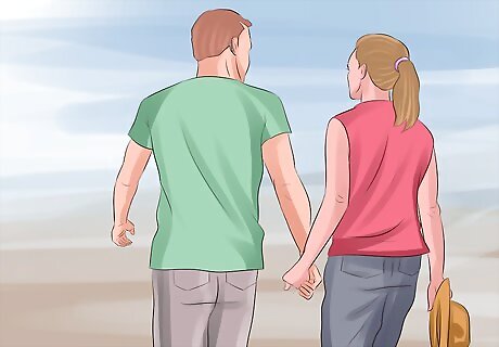 Get out of your comfort zone. It is important to be comfortable in your relationships with the people you love, but not to the point of complacency. Romance and relationships thrive the most when routine and comfort are places you let go of in favor of getting out of your comfort zone. Create opportunities for romance in ways that you haven’t been doing lately. Break out of your routine, go somewhere new, and make an effort to create memorable date nights. Check out new and different places to try out around your neck of the woods. You can visit new restaurants or do some research on events happening around the city. Play different games and/or have some adventure in how you approach being intimate with one another. EXPERT TIP Maya Diamond, MA Maya Diamond, MA Relationship Coach Maya Diamond is a Dating and Relationship Coach in Berkeley, CA. She has 15 years of experience helping singles stuck in frustrating dating patterns find internal security, heal their past, and create healthy, loving, and lasting partnerships. She received her Master's in Somatic Psychology from the California Institute of Integral Studies in 2009. Maya Diamond, MA Maya Diamond, MA Relationship Coach Try writing out your thoughts if you're worried you won't know what to say. Relationship and dating coach Maya Diamond says: "If you want to turn up the romance in your relationship, write a letter to your partner sharing all the ways you appreciate and love them, and what you see in terms of the future with them. Then, when you're alone together, read the letter out loud."
