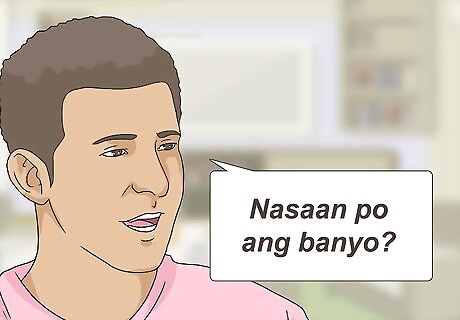 Say "Where is the bathroom?" in these languages: Chinese (Cantonese) = Mmm-goy, tee-saw hai been-doh-ah? (Translit. Excuse me, where is the washroom?) Chinese (Mandarin) = "Duì bù qǐ, cèsuǒ zài nǎr?" (written: "对不起,厕所在哪儿?) ("cèsuǒ" = "toilet" or "bathroom", and "duì bù qǐ" = "sorry" or "excuse me", so the literal translation is "Excuse me, toilet be where?") The "c" is pronounced like a combination of "t", "s", and "z" in the front of the mouth, and "q" is pronounced like "ch" in the front of the mouth. Remember the tones. Hmong (= honm naj nyob qhov twb os? Indonesian = Permisi, di mana kamar mandi? Japanese = Toire wa, doko? [to-ee-le wa do-ko?] (Add 'desu ka?' after 'doko' for politeness.)(To be even more polite, say "otearai wa doko desu ka?". This is "Where is the restroom?". It is said as [oh-tay-ah-rye wa doe-koh dess kah]. Here is the phrase written in Hiragana [おてあらいはどこですか?]) Korean = Hwa-jang-shil uh-dee-in-ga-yo? Malay = Tumpang tanya, di manakah bilik mandi? Mongolian = Uuchlaarai('ʊ:tʃ|ɑ:ræ ), ene (N)ugaalgiin (u-GAWL-GEEN)oroo (o-ROW)ni (N) haana (HUN) baidag (bæ-dag) yum be? Niuean (Pacific Islands) = ko fe e' fale vau? (pronounced ko-feh eh fa-le vau) Portuguese = Por favor, onde é a casa-de-banho? Samoan = E, 'O fea le faleuila? (Ay, Oh fay-ah lay fah-lay-wee-lah?) Tagalog (Philippines) = Nasaan po ang banyo? Thai = hong naam yuu tii nai Tibetan = chap sang gawa yo rey? Vietnamese = Cho hoi, nha` ve^. sinh o da^u va^.y ?