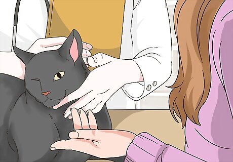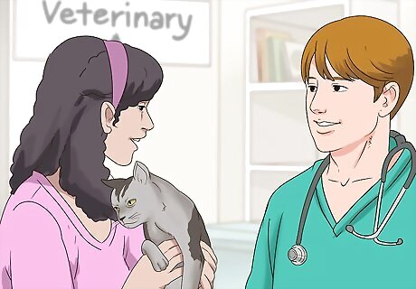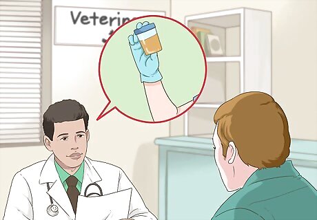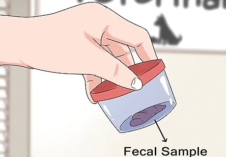 Collect a fecal sample. Your veterinarian may request that you bring in a fecal sample when you bring your cat in for its appointment. The fecal sample will be analyzed in order to look for parasite eggs. Your cat's fecal sample can be collected in a collection bottle supplied by your veterinarian or in a clean plastic container, such as a ziplock bag. It can be collected straight from your cat's litter box.
