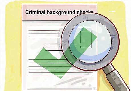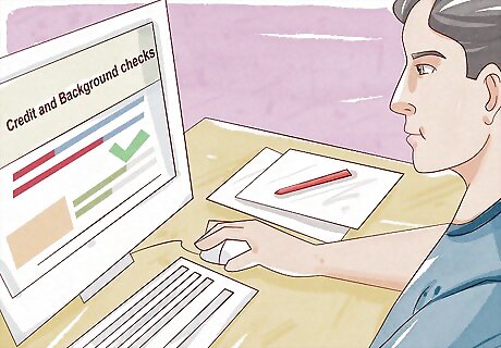 Run credit and background checks. Official credit and criminal background checks are perhaps the most solid way to assess the risk of renting to a particular applicant. Include a line in your rental application stating that by signing the application, the applicant consents to a credit and criminal background check. Set a minimum credit score that you'll accept for applicants, and apply it consistently to all applicants. You may also want to set a range for which you'll accept the applicant provided they pay a larger deposit. Check your state law to see if there's a legal limit on the amount of the deposit you can ask for.