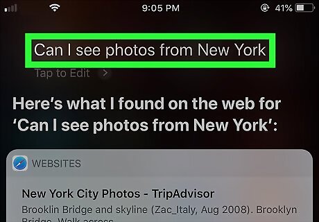 Search photos based on location. If your location services are enabled, your photos will be saved with the location of the picture. You can ask Siri to show you photos from a location you've photographed with your phone. For example, you can say "Can I see photos from New York?" or just "Photos from Miami."