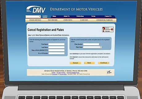 Cancel your registration. Depending on your state, you may have to turn in your license plates to the DMV. At the same time, you can cancel your registration. The new owner must then register the vehicle in their own name. Also remember to cancel the insurance on your car. Contact your insurance agent.