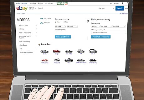 Find websites. There are several websites that are dedicated to bringing buyers and sellers together. You should visit each website to compare and to check how other people advertise their cars. The following are some of the more common websites sellers use: eBay Motors (local sales) Craigslist (local sales) Cars.com (national sales) Kelley Blue Book (national sales) Autotrader.com (national sales)
