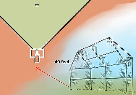 Erect a backstop. Protect spectators behind the batter’s area from missed pitches and stray balls. Install a backstop 60 feet behind home plate for adult players; for Little League, install it 25 feet behind home plate. Failing that, plant hedges instead to catch stray balls. Standard-sized backstops stand 30 to 40 feet high and measure 30 feet wide directly behind home plate, with 40-foot extensions running parallel with the baselines from either end. For a 30-foot height, dig foundation holes 2 feet in diameter and 7.5 feet deep for the supports. For a 40-foot height, make your holes 9.5 feet deep. Once they are placed inside each hole, secure the poles firmly in place by filling the hole with concrete.