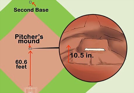 Create a pitcher’s mound. Remove the marked turf within your pitcher’s mound. Replace the turf with a mix of sand, clay, and silt. For adults, build your mound until the center rises 10 1/2 inches higher than home plate. For Little League, make your mound 6 inches at its highest. Then create the “slope” in front of the pitcher’s rubber by removing 1 inch of soil from the mound for every foot in front of the rubber, starting one foot out, until the soil reaches ground level at the edge of the mound. For the pitcher’s mound, use a mix that’s 40% sand, 20% silt, and 40% clay.