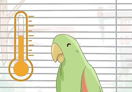 Watch the temperature of the habitat. Generally, eclectus parrots do best in a temperature range between 65 and 80 degrees Fahrenheit. Your parrot’s health will suffer if it is exposed to temperatures outside this range for long periods of time. Eclectus parrots should never be exposed to temperatures colder than 40 or hotter than 90 degrees Fahrenheit. If you live in an environment with extreme temperatures, you should house your parrot inside and in a room that is heated/cooled.