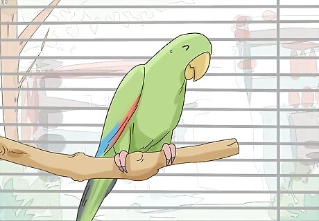 Put a soft wood perch in the cage. The best perches are untreated, made of soft wood, and large enough to support your bird’s weight. Your parrot will perch on it and may peck at it. Specific woods you should consider are manzanita or ribbon wood. If you have a larger cage, feel free to provide several perches. In addition, if you have multiple birds, you should supply at least two perches.