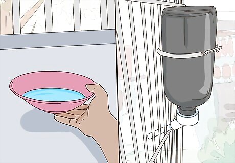 Place a water dish and a water bottle in the habitat. It is important to use both, as your bird may drop food into the water bowl or stand in it. The water bottle will serve as a backup and make sure your eclectus has plenty of fresh water to drink.
